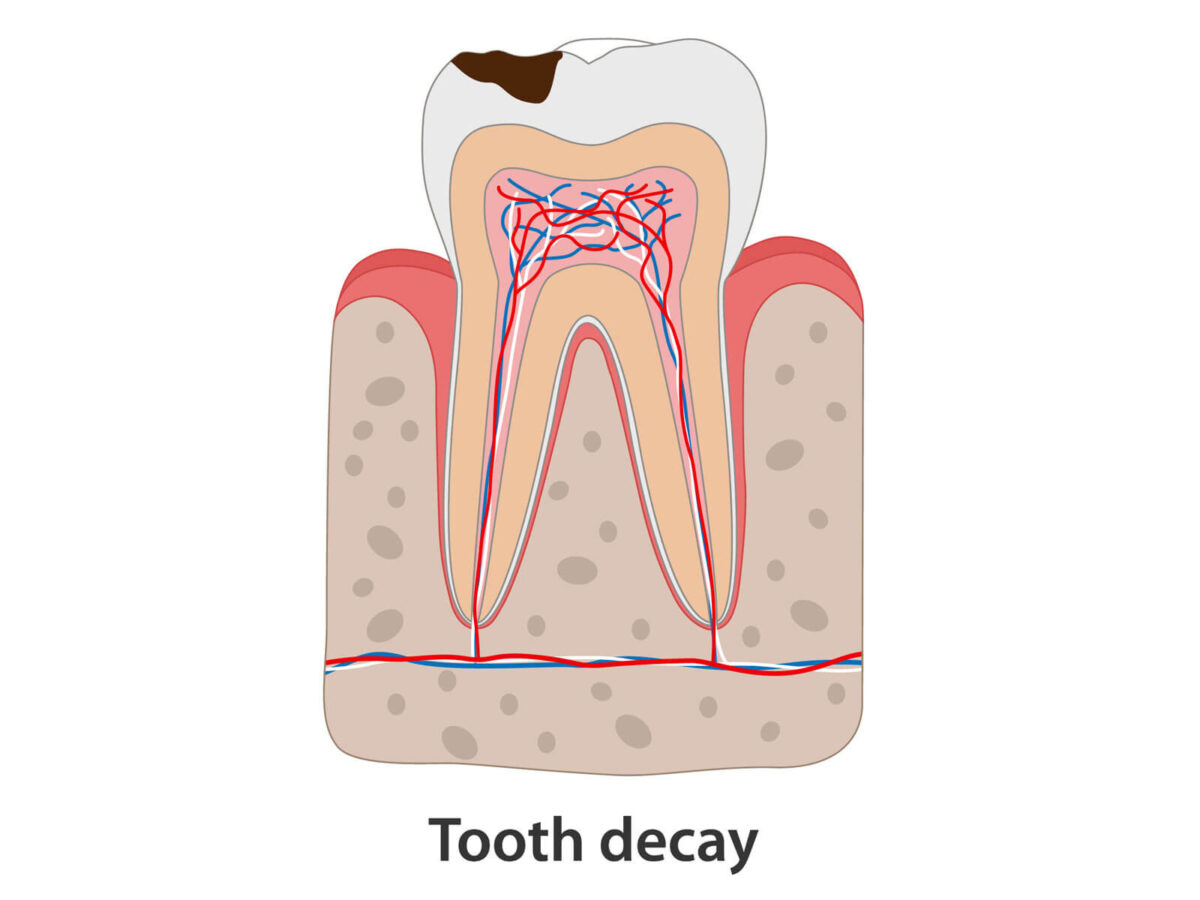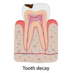 Bacteria being in the mouth is completely normal. Things shift when food particles stick around on teeth, especially sweets and starches. Bacteria feed and acid forms as a result. It doesn’t cause damage overnight, but little by little, the acid wears down enamel, the hard outer coating of the tooth.